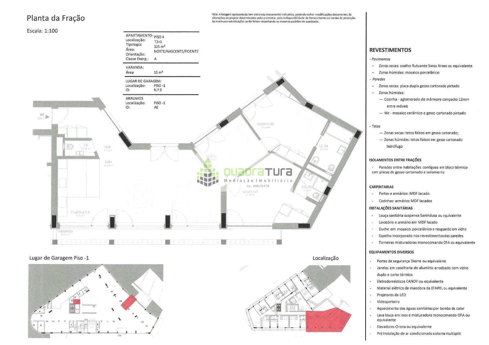 A garagem na Cave dispõe de lugares de estacionamento e arrecadações afetos às frações, são equipados com fichas para carga de veículos elétricos.