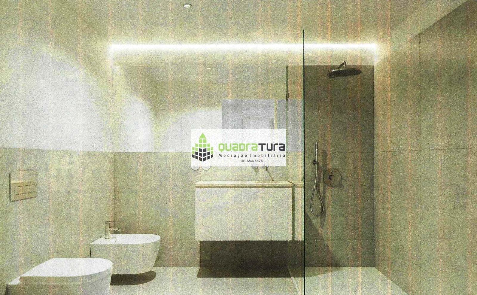 - Zonas húmidas: cozinha - aglomerado de mármore compacto entre móveis, Casas de banho - mosaico porcelânico e gesso cartonado pintado
