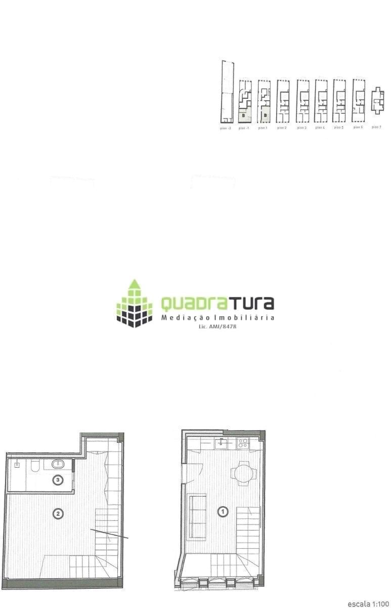 Esta fração T1, é constituída por 2 pisos, sala e Kitchenette em open space no piso 1 (R/C), quarto com grande roupeiro e casa de banho completa no piso -1.