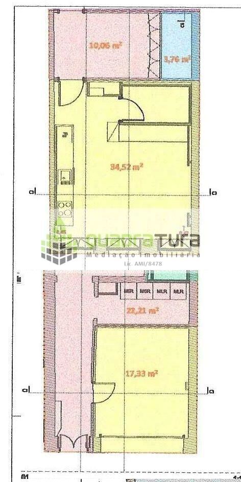 2º PISO Frente = apartamento c/ 34,52m2 de área + 17,33m2 de Garagem/Box