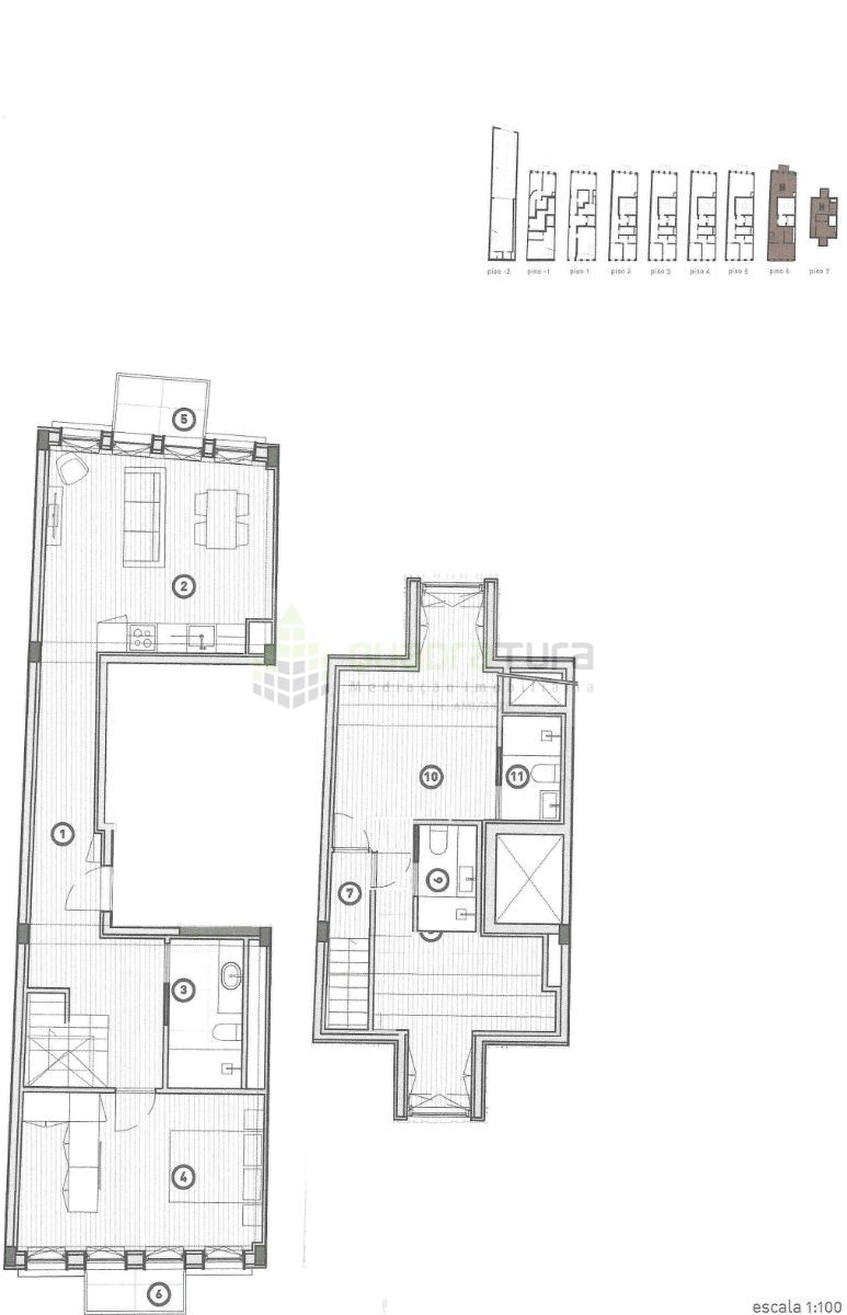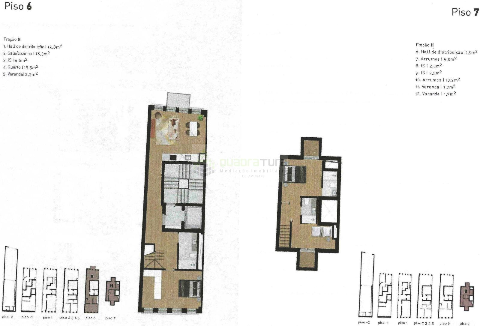 Esta fração T3, é constituída por 2 pisos, dispõe de 3 casas de banho, situado no último piso com 2 varandas.